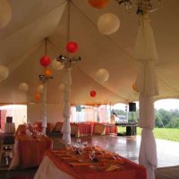 Equipment Provided: | 40' x 80' rope and pole tent fully floored and carpeted with theatrical lighting and twinkle lighting. 18' x 28' Dance floor 20' x 40' cook tent with lighting and siding. |